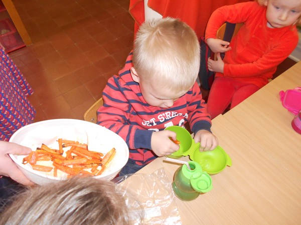 Alles is oranje !we maken wortelfrietjes....Hmmm....heerlijk !Hallo, dag allemaal !Zoek de juiste kleur !