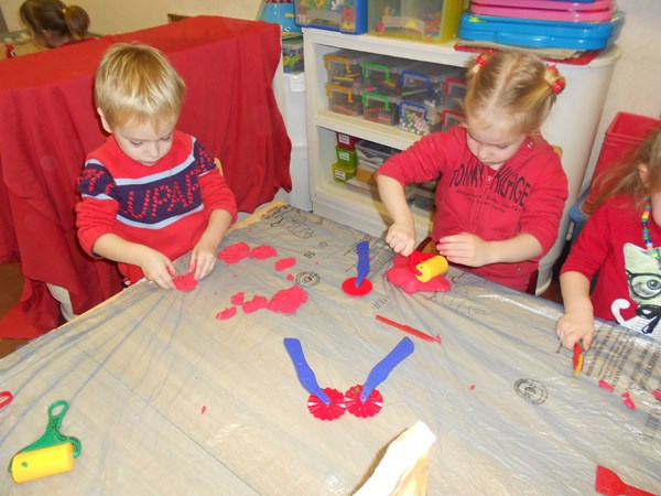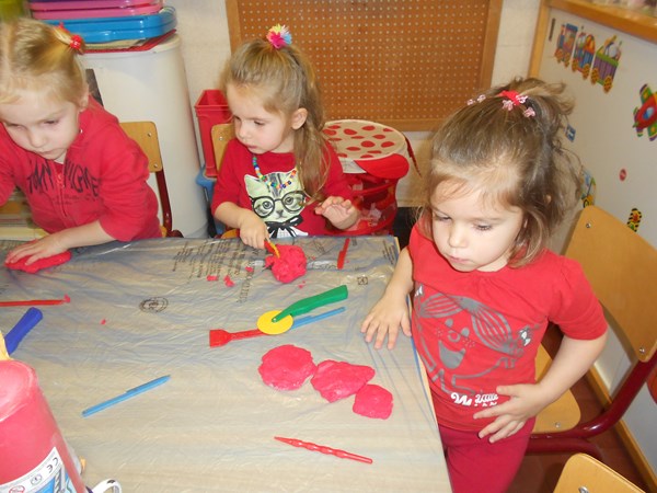 Rood speeldeeg maken en er mee spelen...