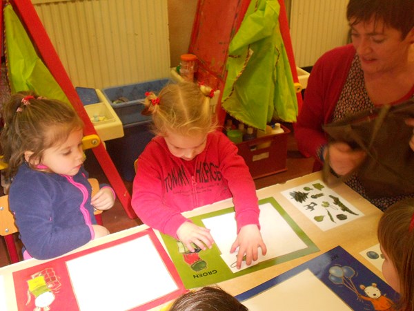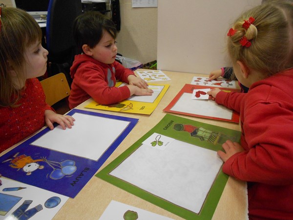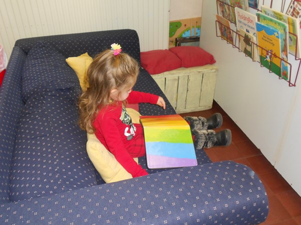 De leeshoek...prentenboek 'lezen' ....verhaaltjes over kleuren...