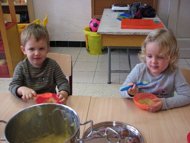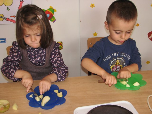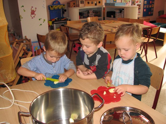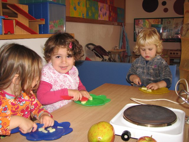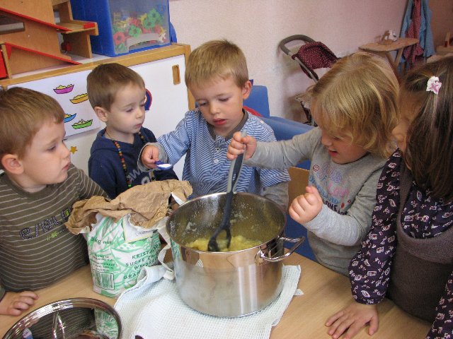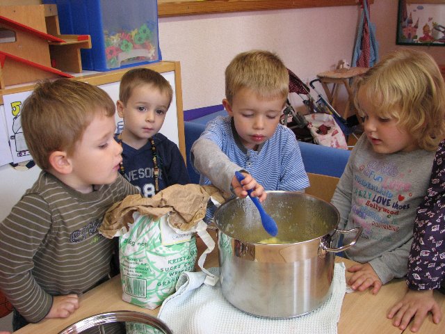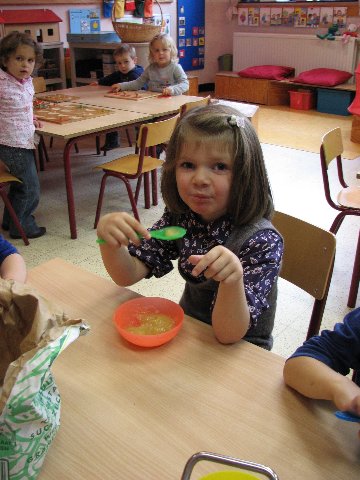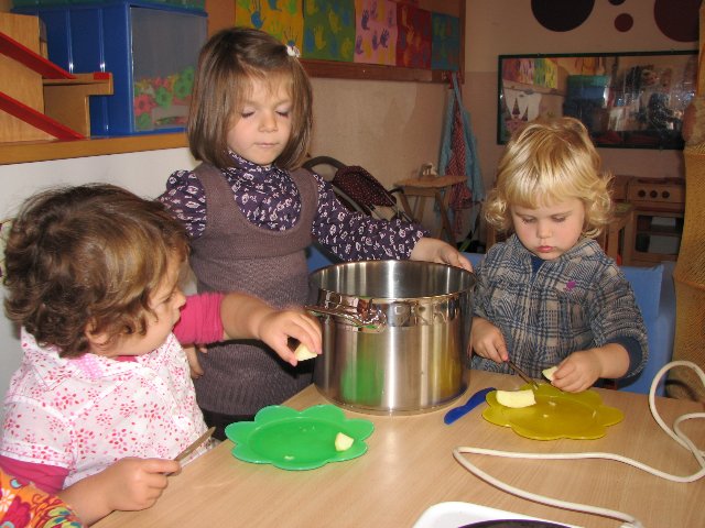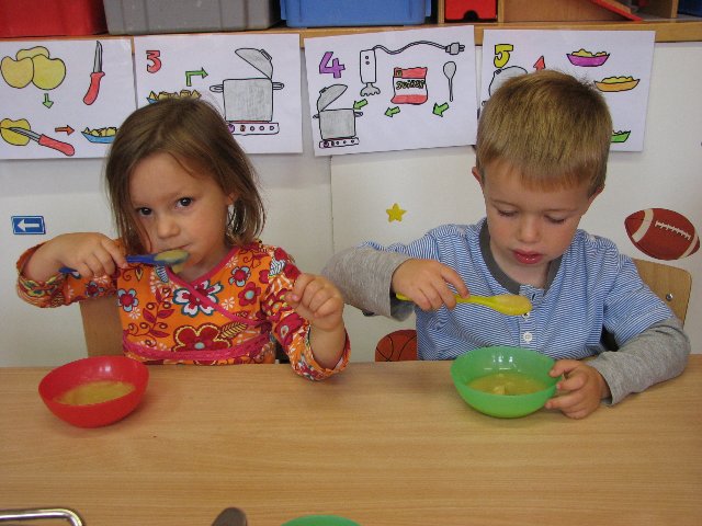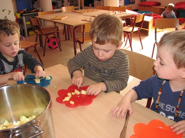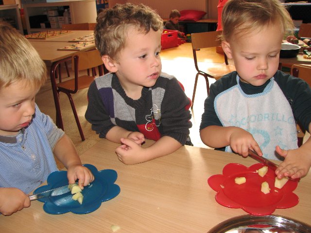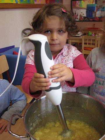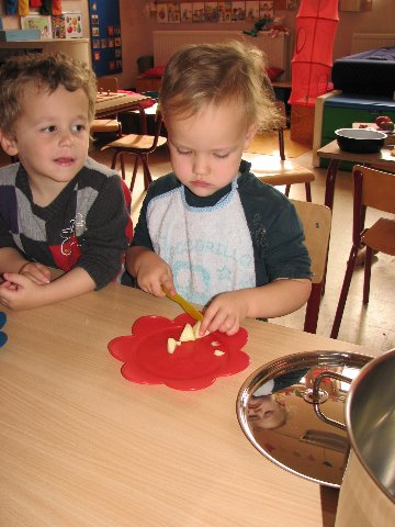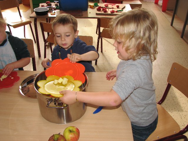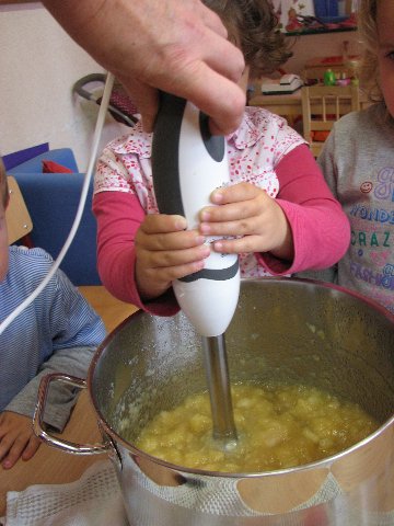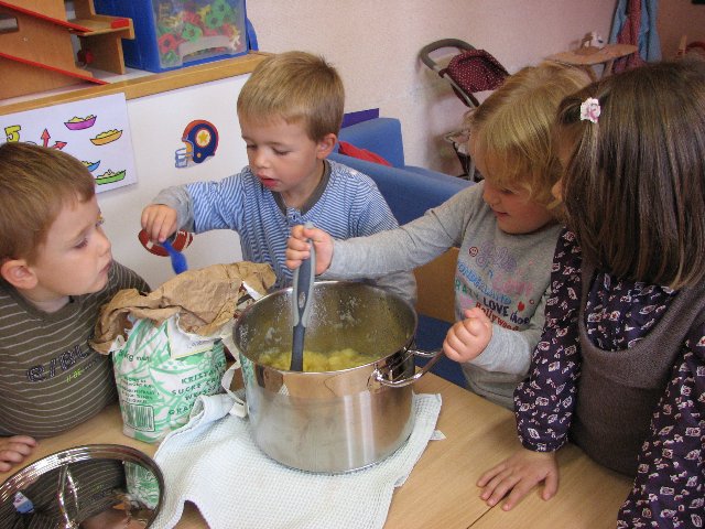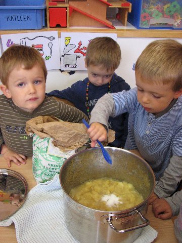 We maken heerlijke appelmoes in de klas. Dat wordt smullen