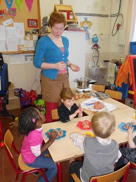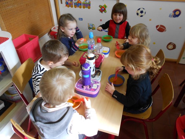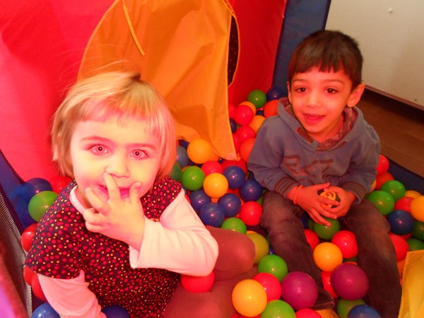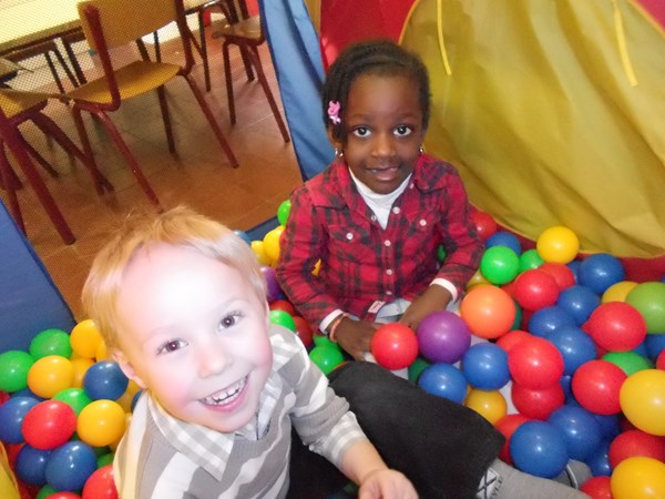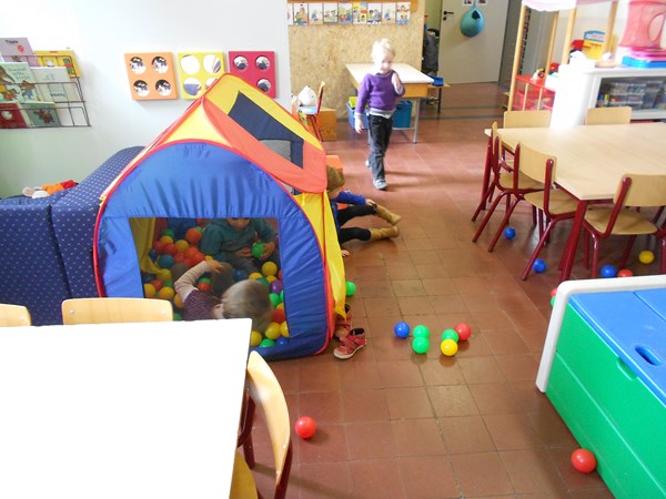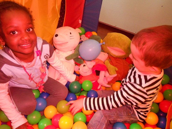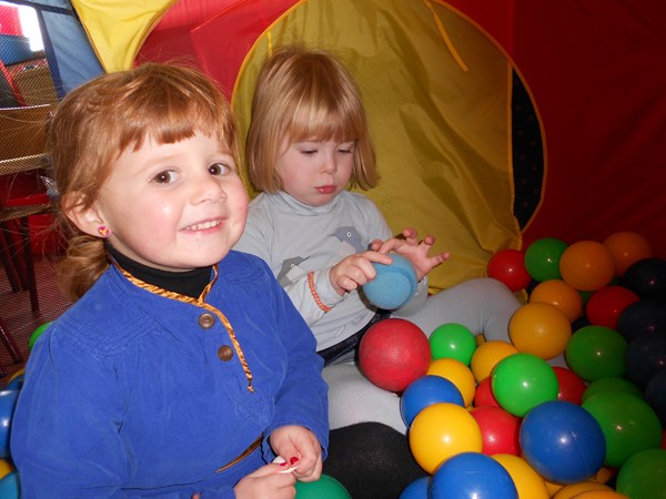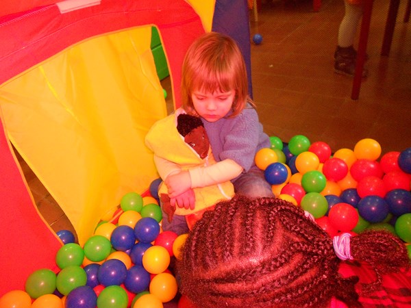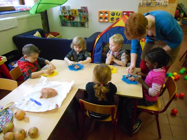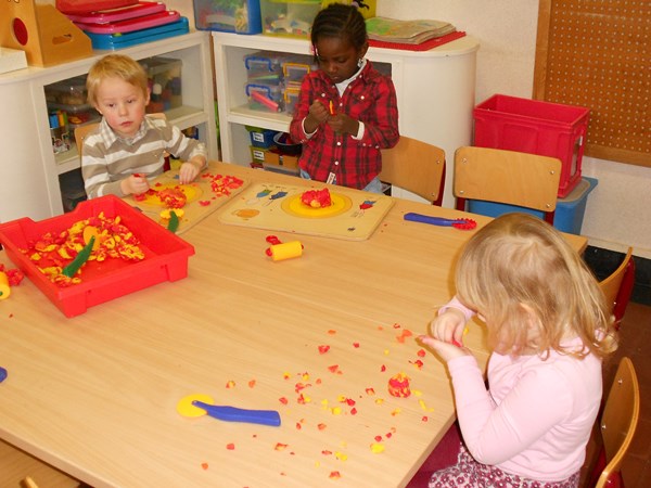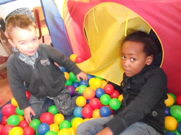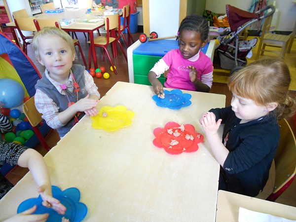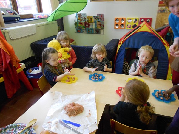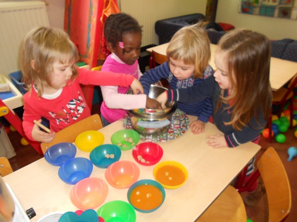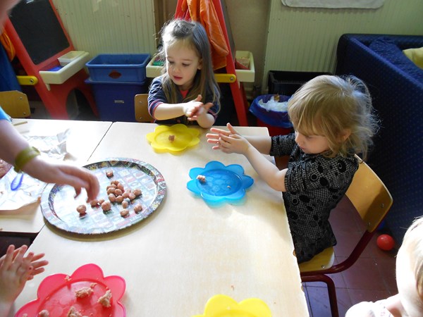 Balletjes eerlijk verdelen....tellen en dan in de kommetjes leggen