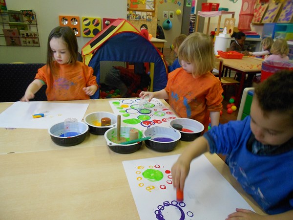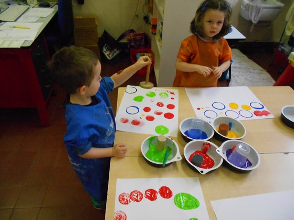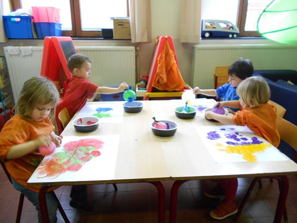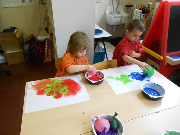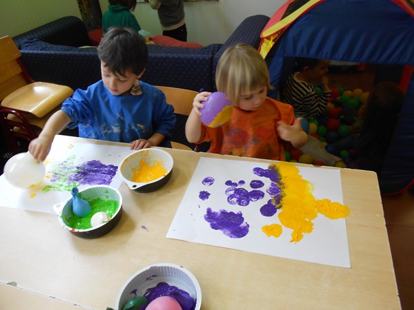 stempelen/schilderen met ballonnen (gevuld met zand/leeg)