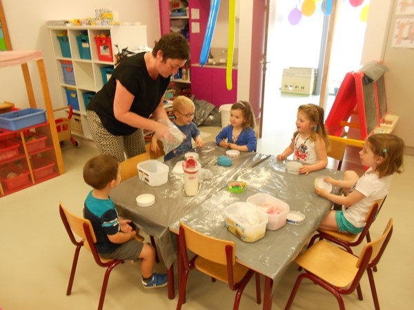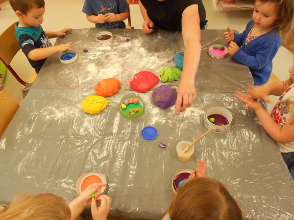 We maken ons eigen ballenbad: Balletjes rollen met gekleurd speeldeeg.