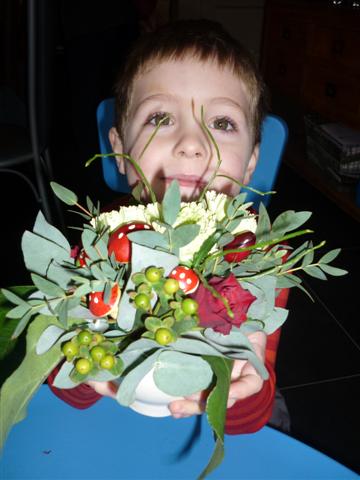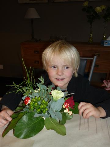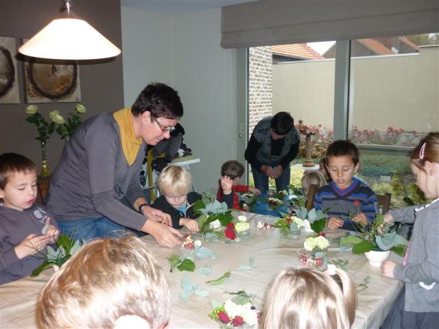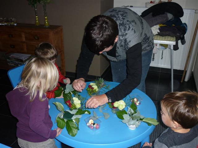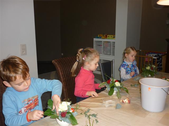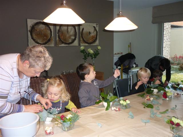 Bloemschikken met de oma's van Mateo, Elias en Jitske