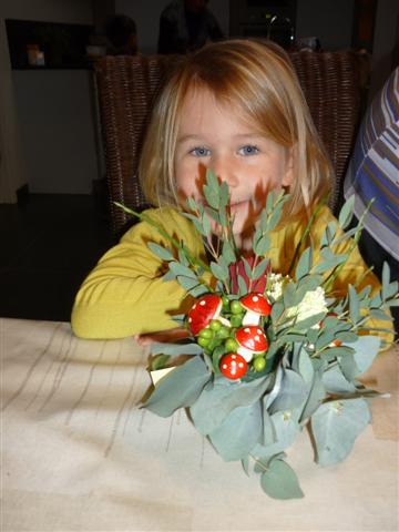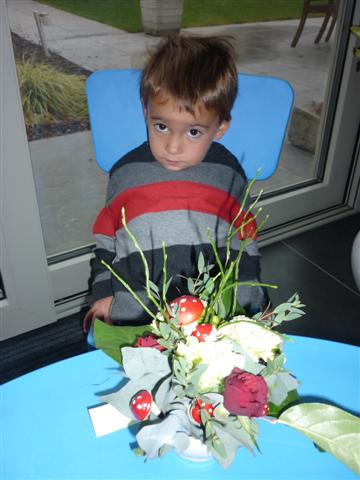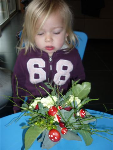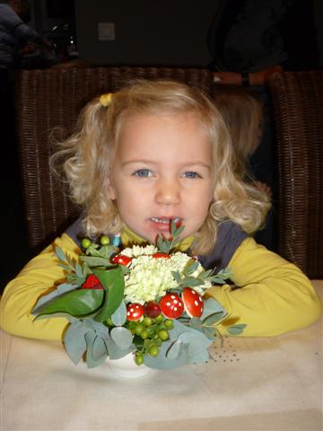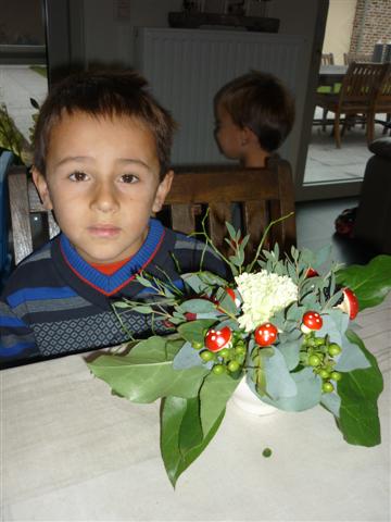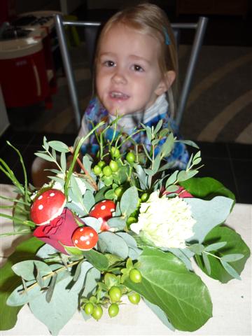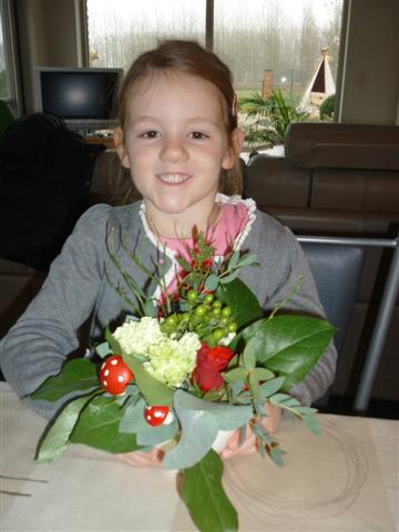 Het is ons gelukt, we hebben allemaal een mooi bloemstuk gemaakt.
