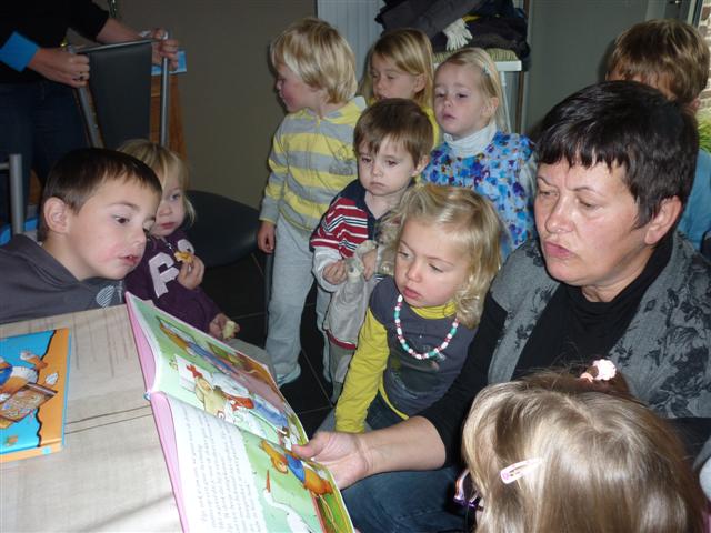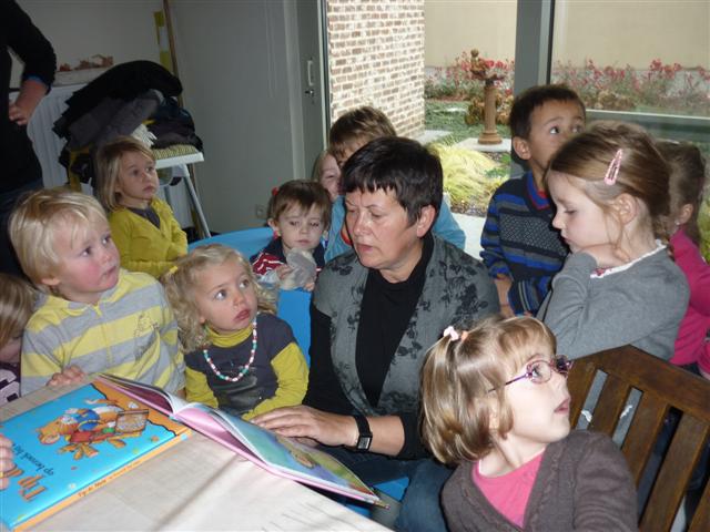 Oma An leest een verhaaltje van Tip de muis.