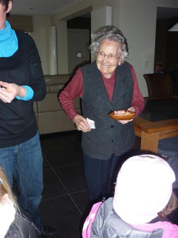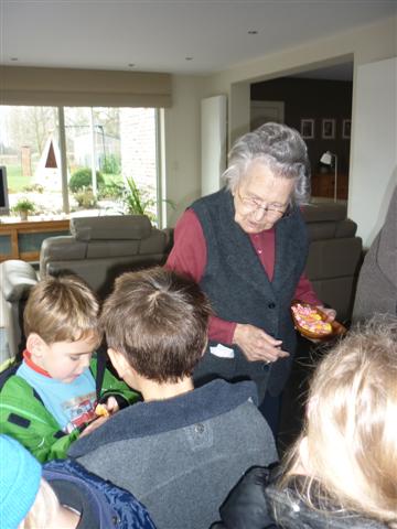 De overgrootmoeder van mateo, Elias en Jitske geeft ons nog een lekker snoepje. Daaaag, tot de volgende keer. Het was heel fijn en dankjewel voor de leuke les en de materialen.