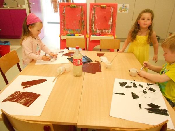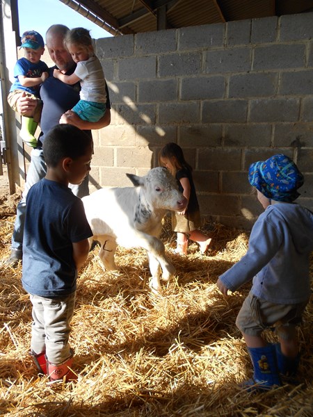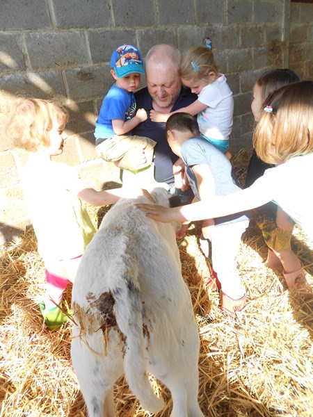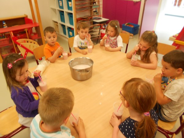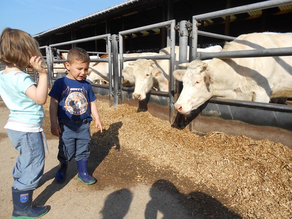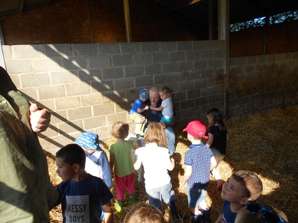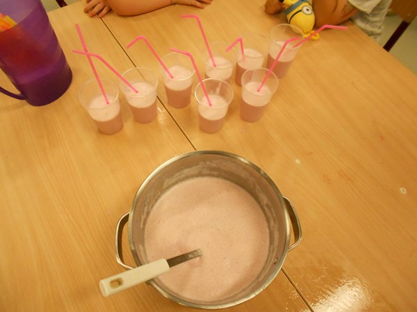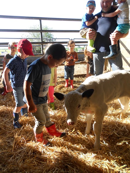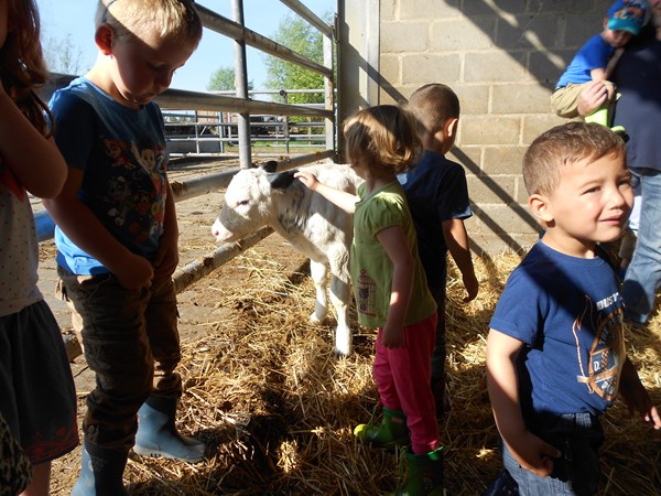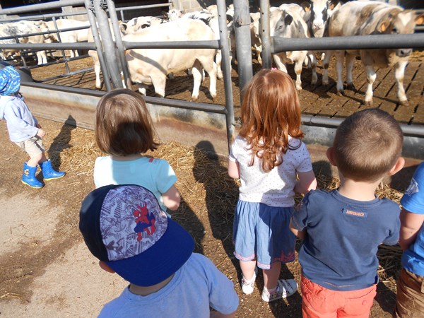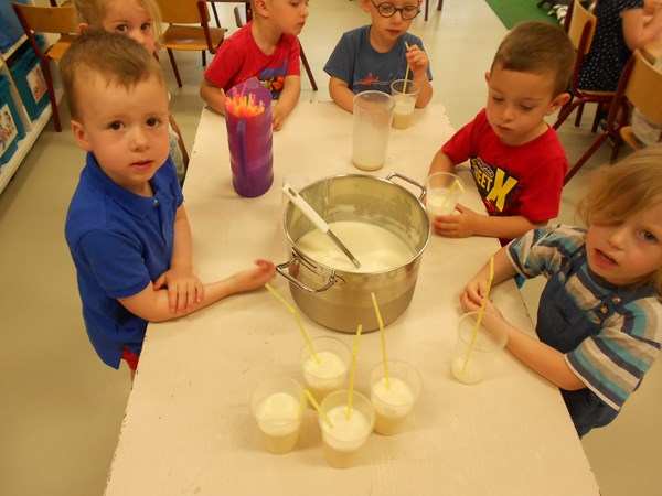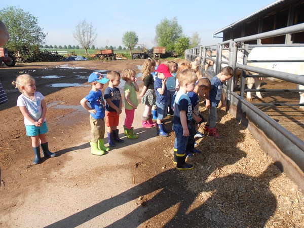 Boe, zegt de koe...De "koeien-wei" Koeienvlekken scheuren en klevenNaar de koeienboerderij van boer Bart.Ooh, hoe lief, we mochten het kalfje aaien....Milkshake maken.... banaan en aardbei.... Mmm....