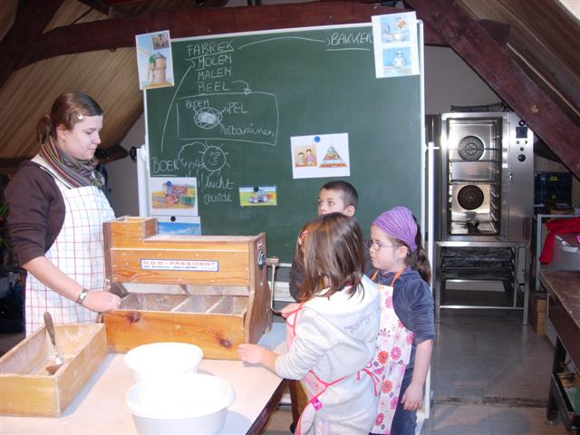Het meel wordt gesorteerd tot bloem, vitaminen en pelletjes.