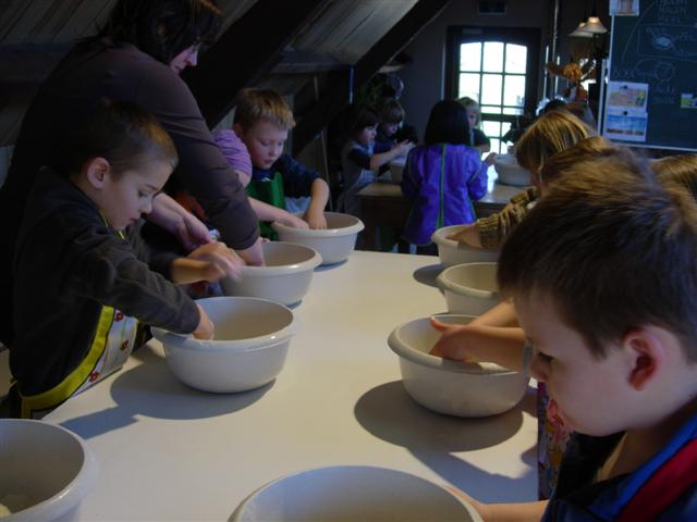 Eindelijk zelf aan het werk: ons eigen deeg maken.