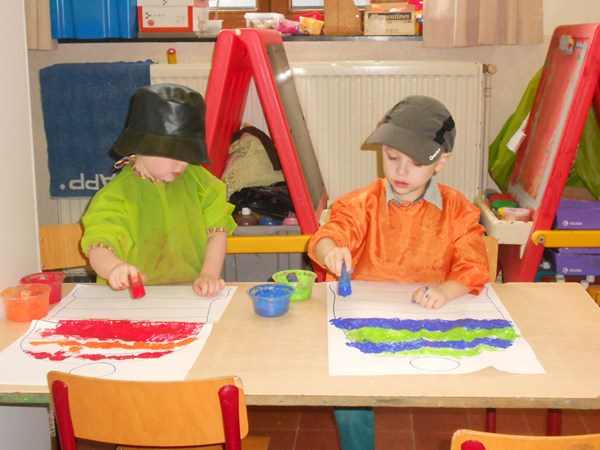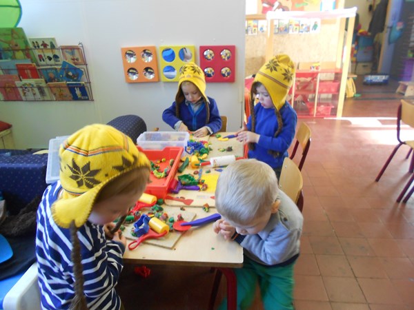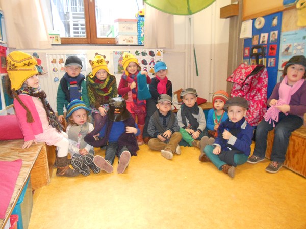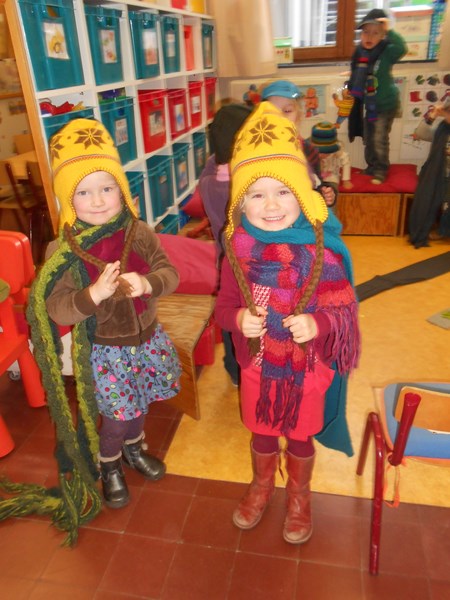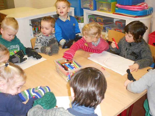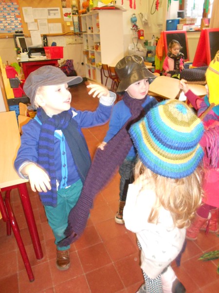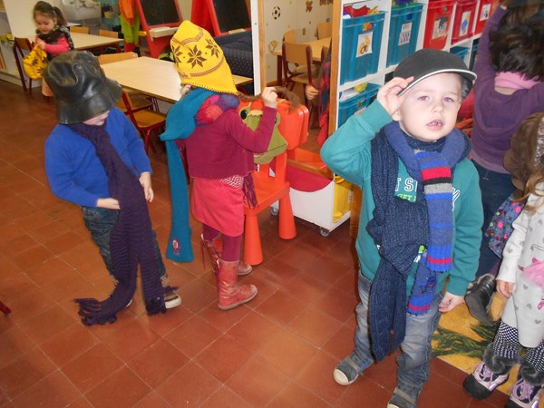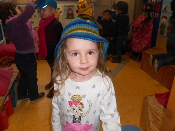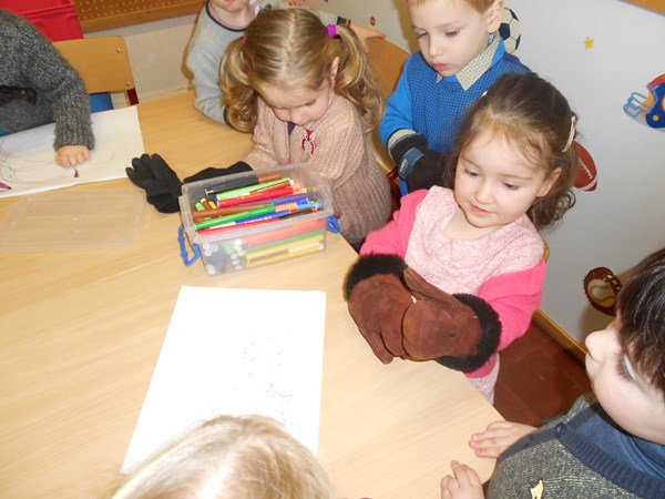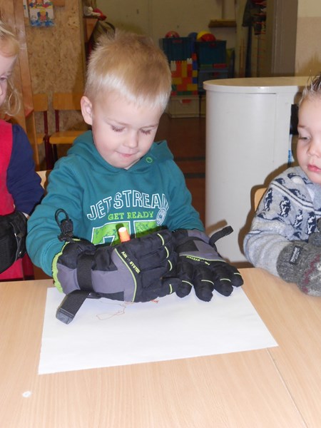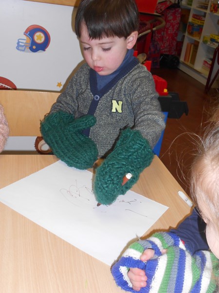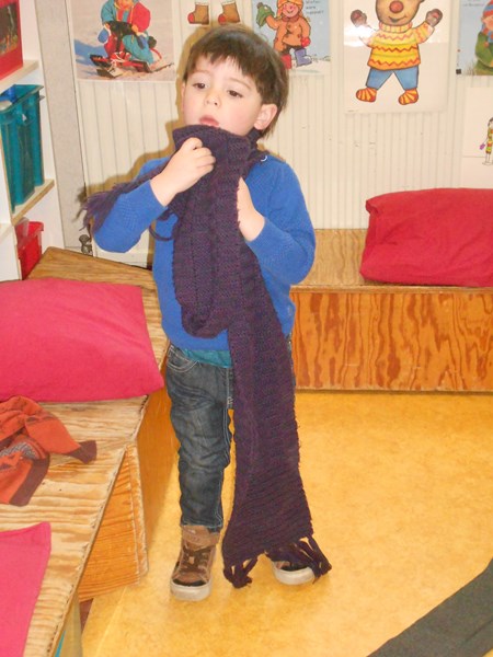 Brr....het is koud !We knippen franjes aan een sjaal !Stempelen: een warme muts !Wanten of handschoenen....?Moeilijk hoor....met wanten/handschoenen tekenen ... ;-)
