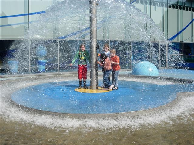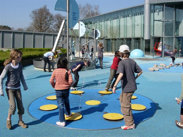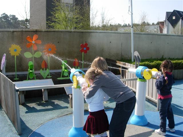 buiten experimenterenonder de waterparaplu lopenmekaar eventjes nat maken?Door de waterstraal de bloemblaadjes laten bewegen. Eventjes mekaar helpen! Samenwerken en zorgen dat er water in de kom (in het midden) stroomt.