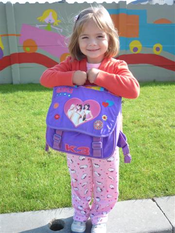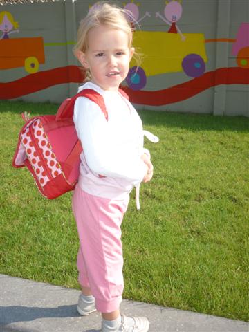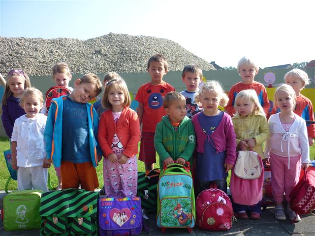 Hier zijn we dan, de kleuters van Melkwezer, in onze pyama op de eerste schooldag.