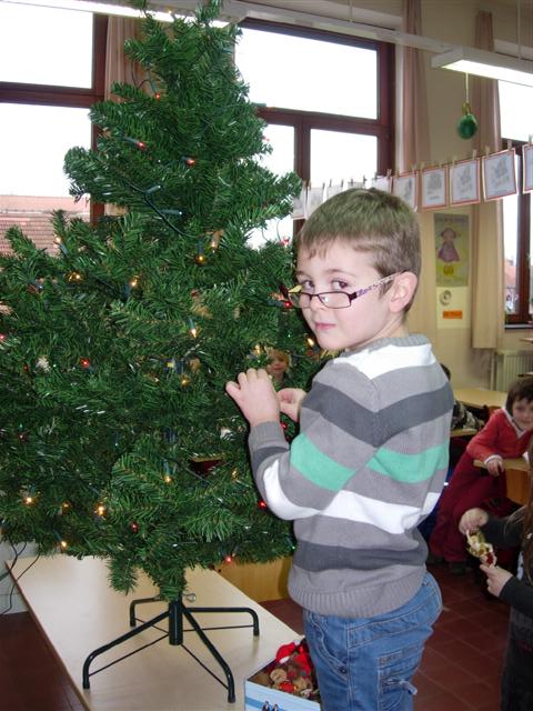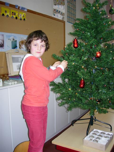 De kerstboom versieren.