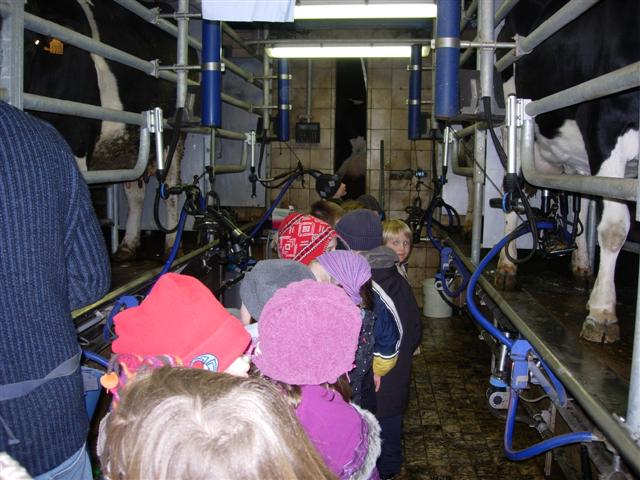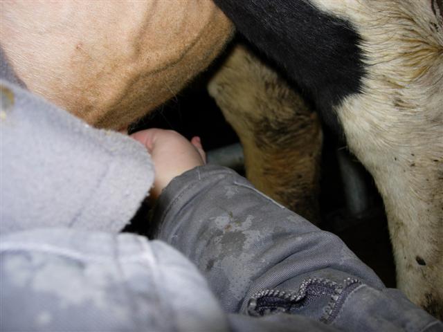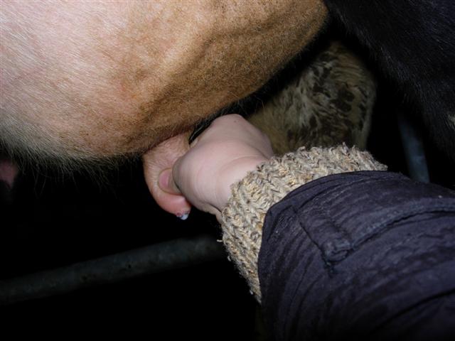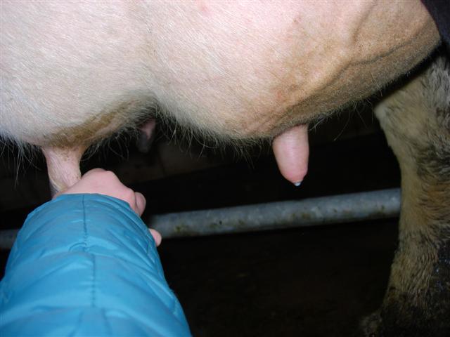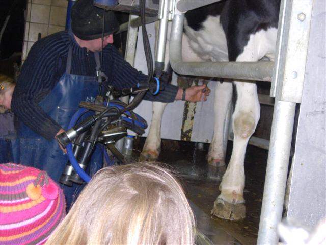 De koeien melken.