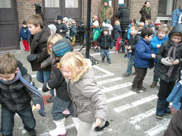 Eindelijk is de Sint in aantocht, we gaan eens kijken of hij veilig aangekomen is want het is heel erg glad buiten!