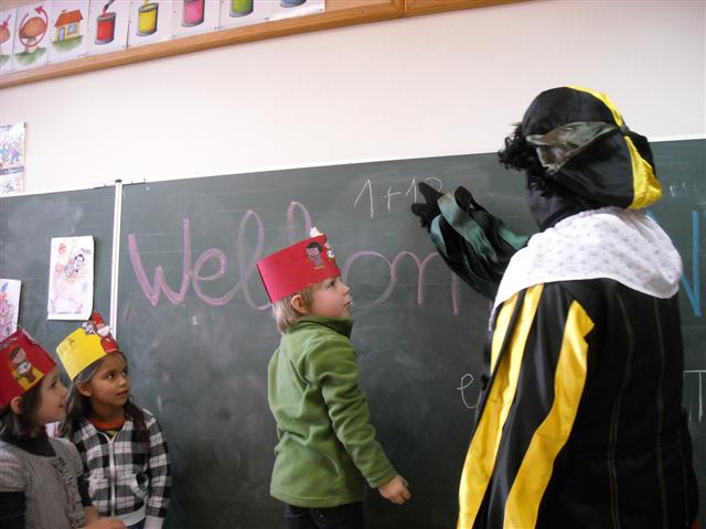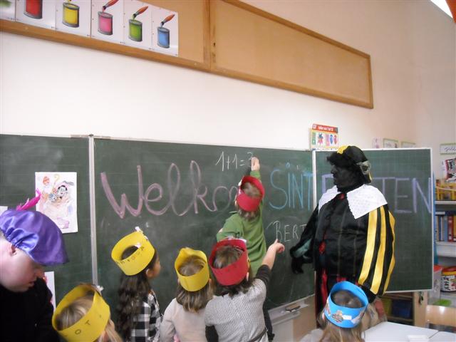 Oei, waar is sint zijn paard? De directeur doet even navraag.