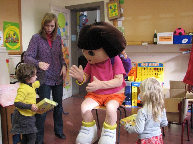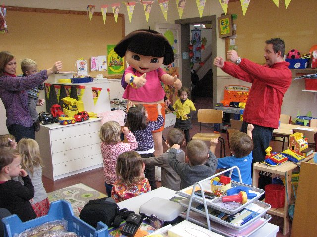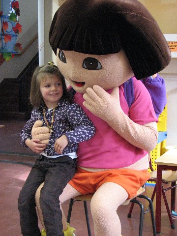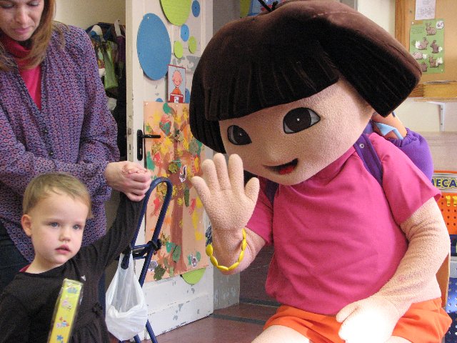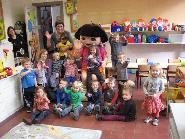 Dora komt aan in onze school. Welkom Dora, we zijn blij dat je er bent !