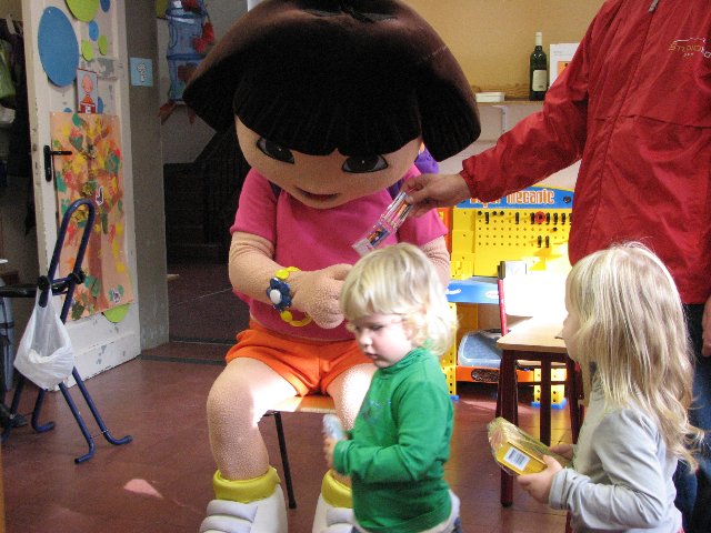 Na een kennismaking met Dora en een fotosessie gaan we dansen en feesten. Iedereen doet mee, of kijkt een beetje langs de kant toe.