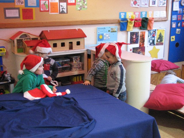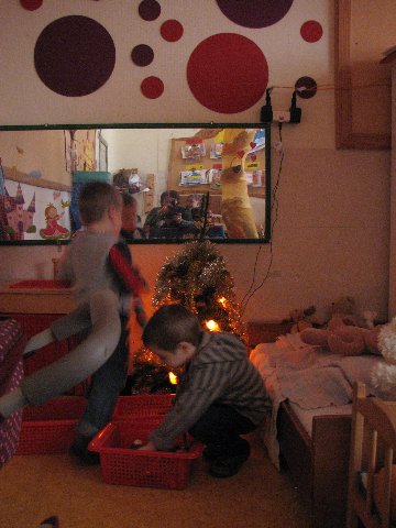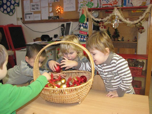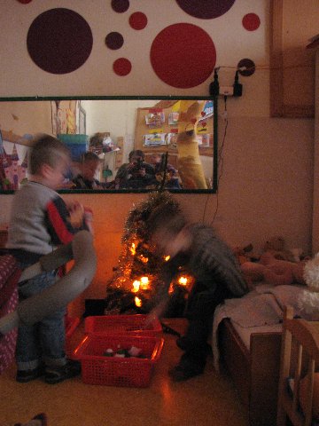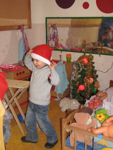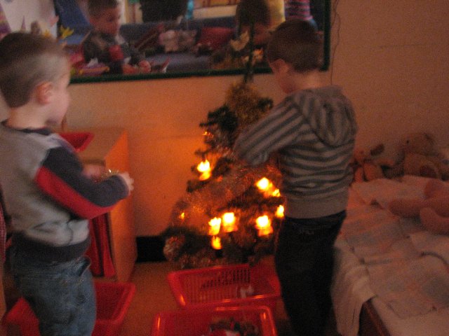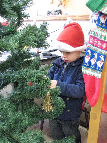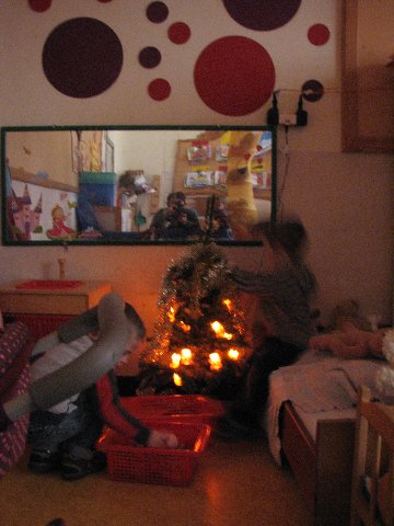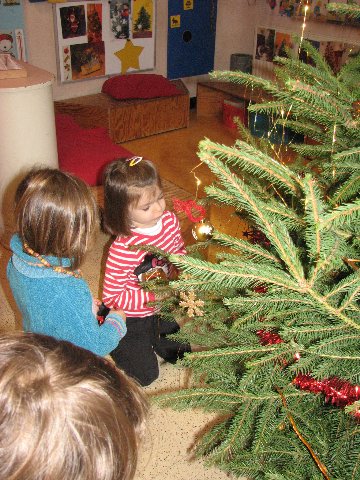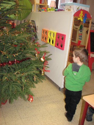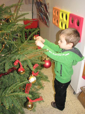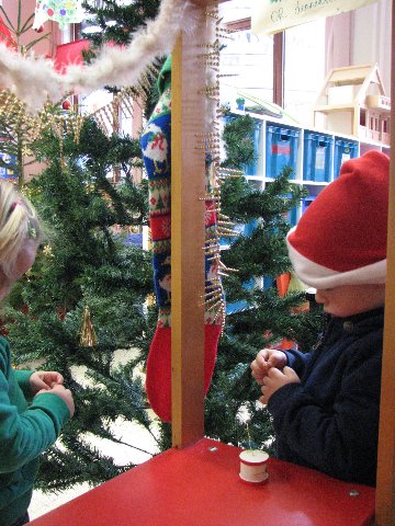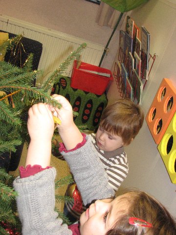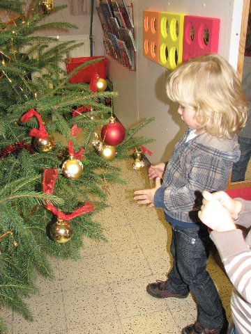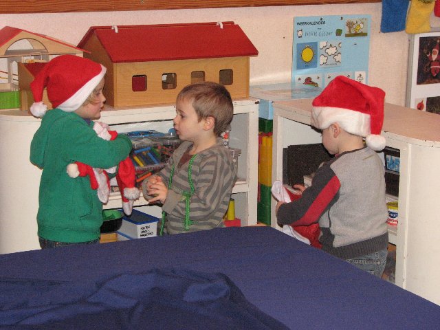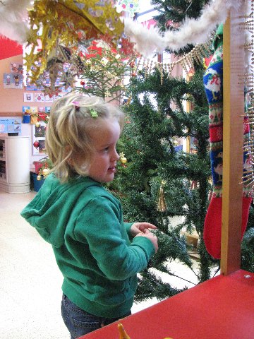 In de poppenhoek staat ook een kerstboompje die we mogen versieren. Het is er gezellig.
