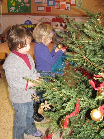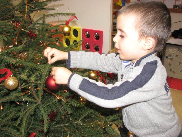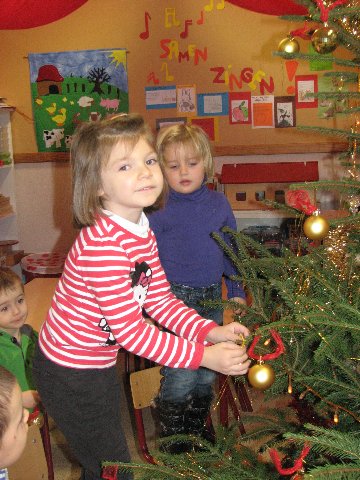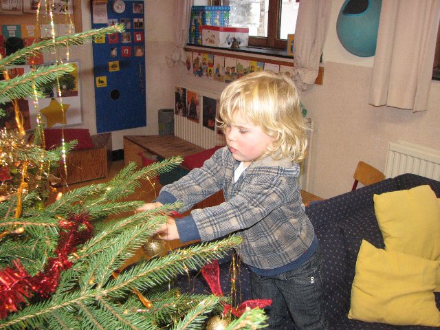 Wij versieren onze kerstboom met ballen en slingers en lichtjes. Iedereen helpt mee, zo wordt het een pracht van een kerstboom !