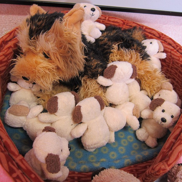 Elk baasje kiest een eigen hondje uit en elk hondje krijgt een eigen sjaaltje om het te kunnen herkennen. Want de kleintjes lijken natuurlijk heel erg op elkaar.