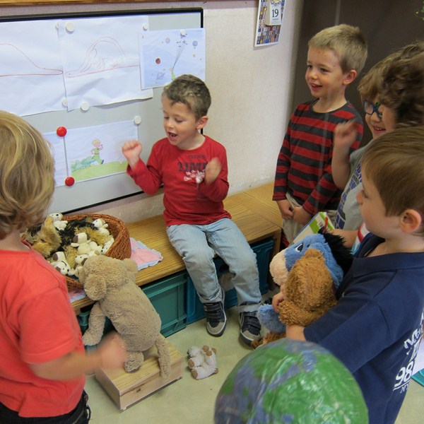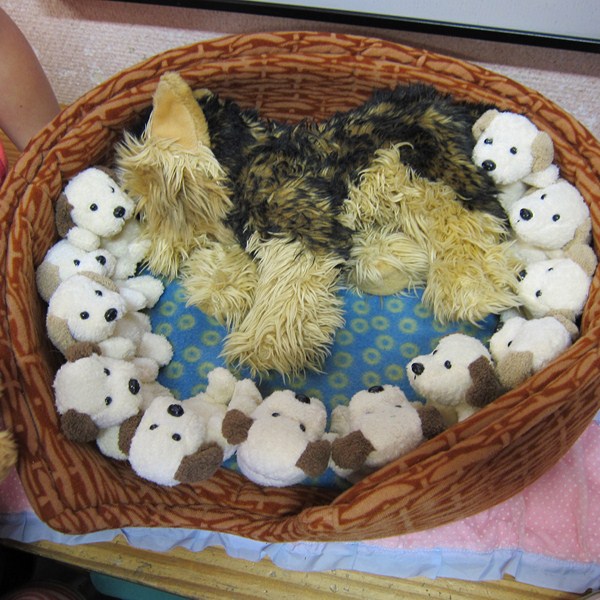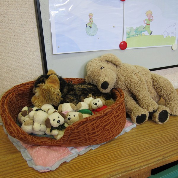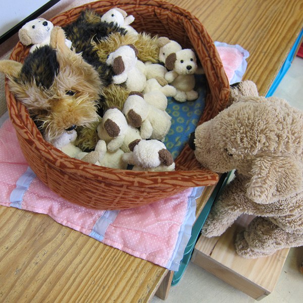 's Morgens wacht de kleuters een grote verrassing in de klas: een nestje puppy’s is geboren. Fabulousa ligt in de mand van Julien, en Julien heeft een bankje bijgezet om van daar bovenop met zijn neus zijn kroost te kunnen aanschouwen.