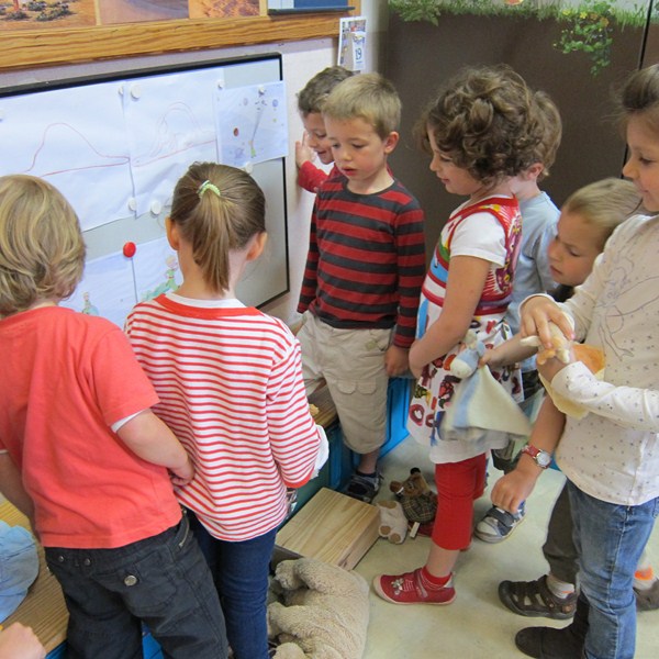 Ook door de kleuters wordt het nest uitvoerig bewonderd.