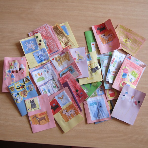 Dat betekent: heel veel geboortekaartjes maken. En de stapel papier van de kaartjes die nog niet af zijn, is heel erg dik. Weer een goeie les in doorzetten.