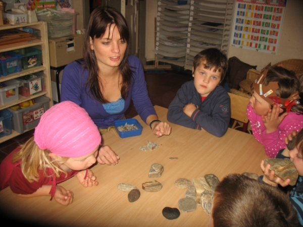Juf bracht verschillende bijzondere stenen mee naar school.