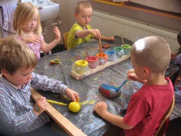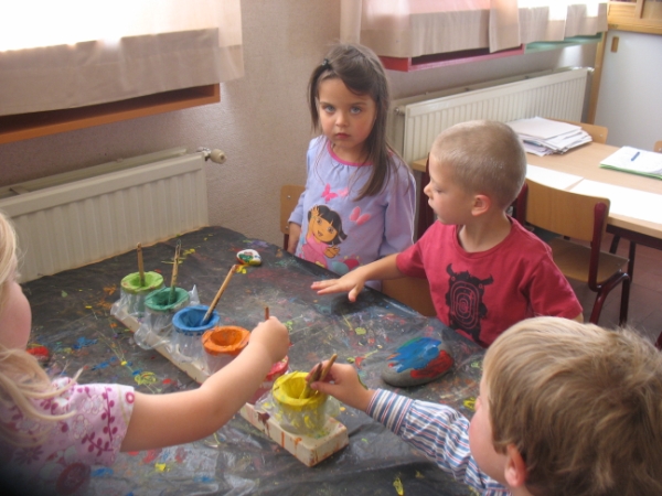 Voor onze papa’s beschilderen we elk een grote kei en versieren die met glitters.