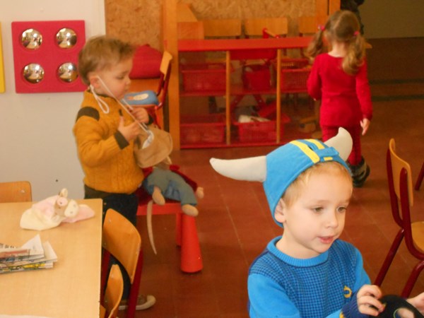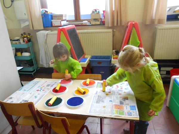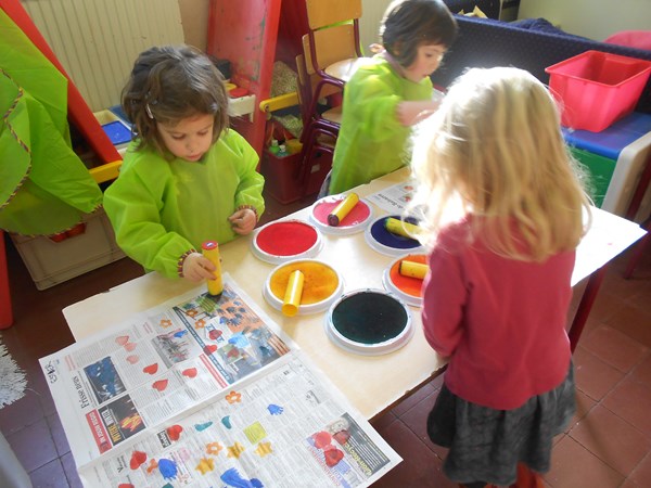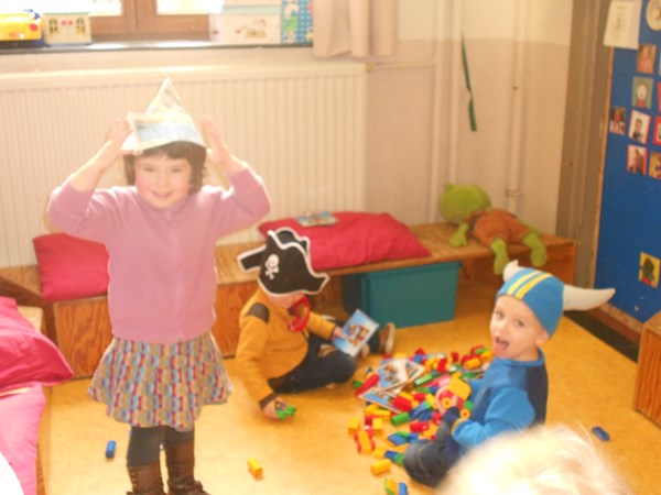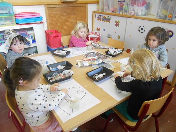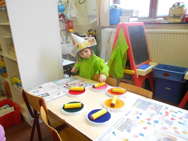Eén, twee, drie, vier, hoedje van papier...Scheuren en kleven met krantenpapier !Stempelen met figuurstempels op kranten: een kleurrijke krant ;-)verkleden met hoeden/mutsen/hoedjes van papier.....