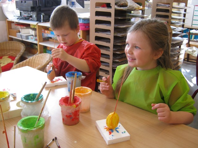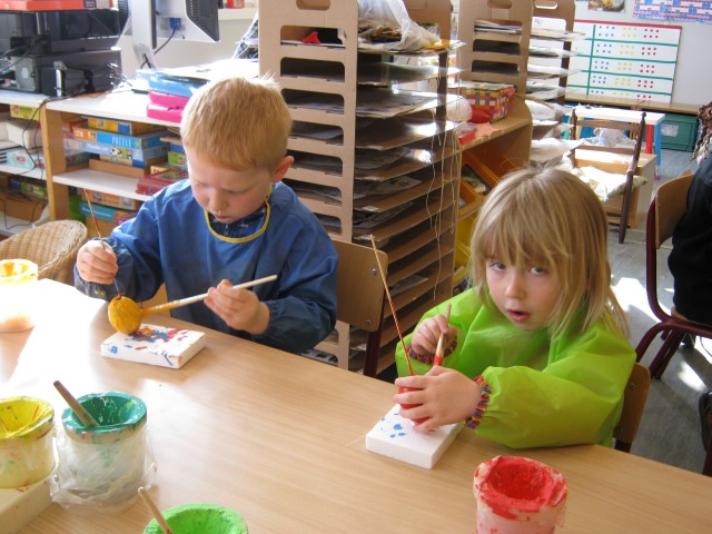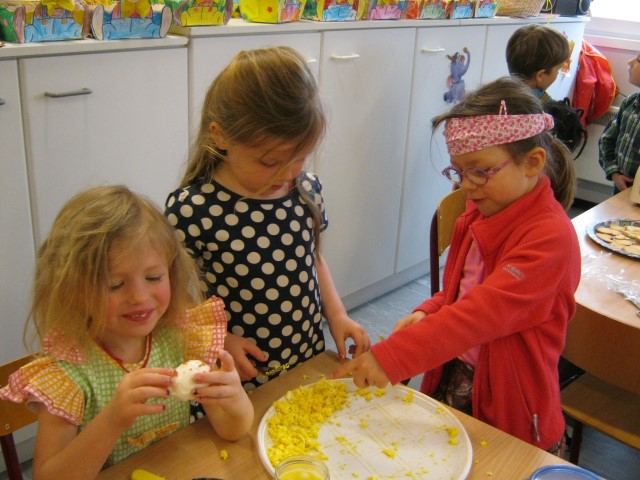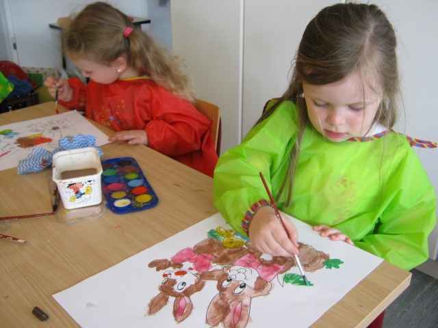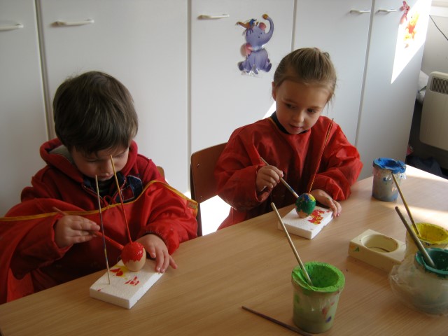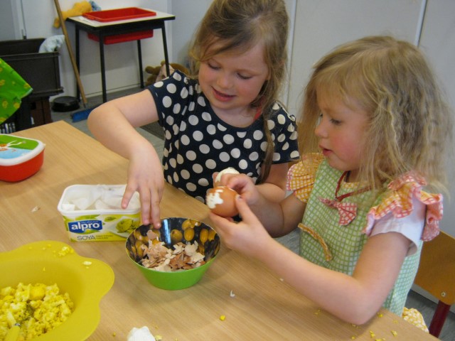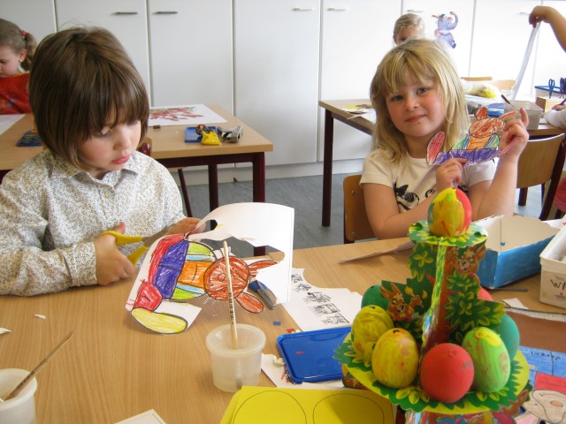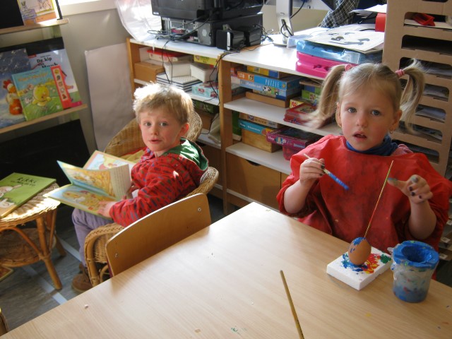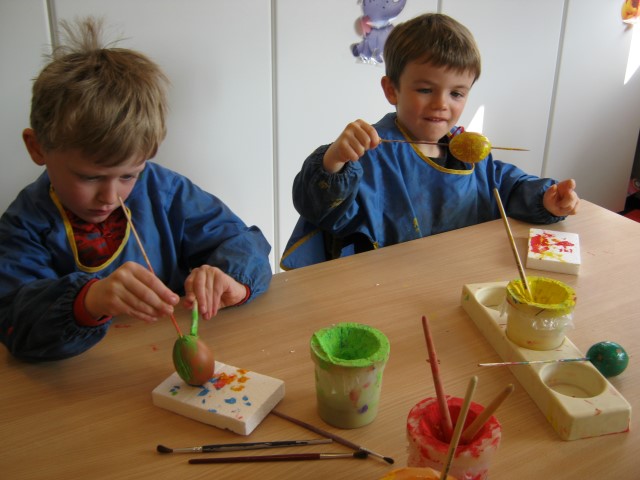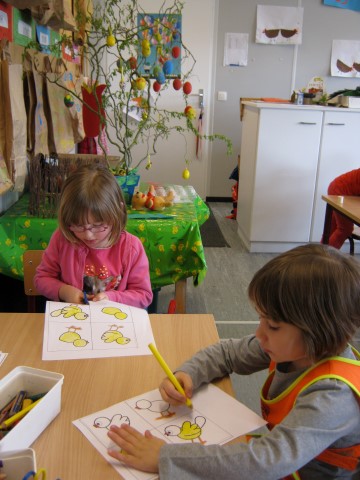 eitjes schilderen in alle kleurenEn op 1 april mochten we iemand foppen, wie ziet het aprilvisje???? Ondertussen gaat alles ongestoord verder.Elke dag kijken we of er al iets uit het ei van Ronin gekomen is.