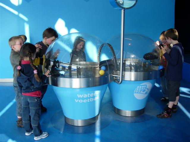 fietsenKan ik het water laten koken door te fietsen?Mijn handafdruk in het ijs, zou dat lukken of wordt het te koud?Door de waterstraal proberen we een balletje in de goal van de ander te krijgen.