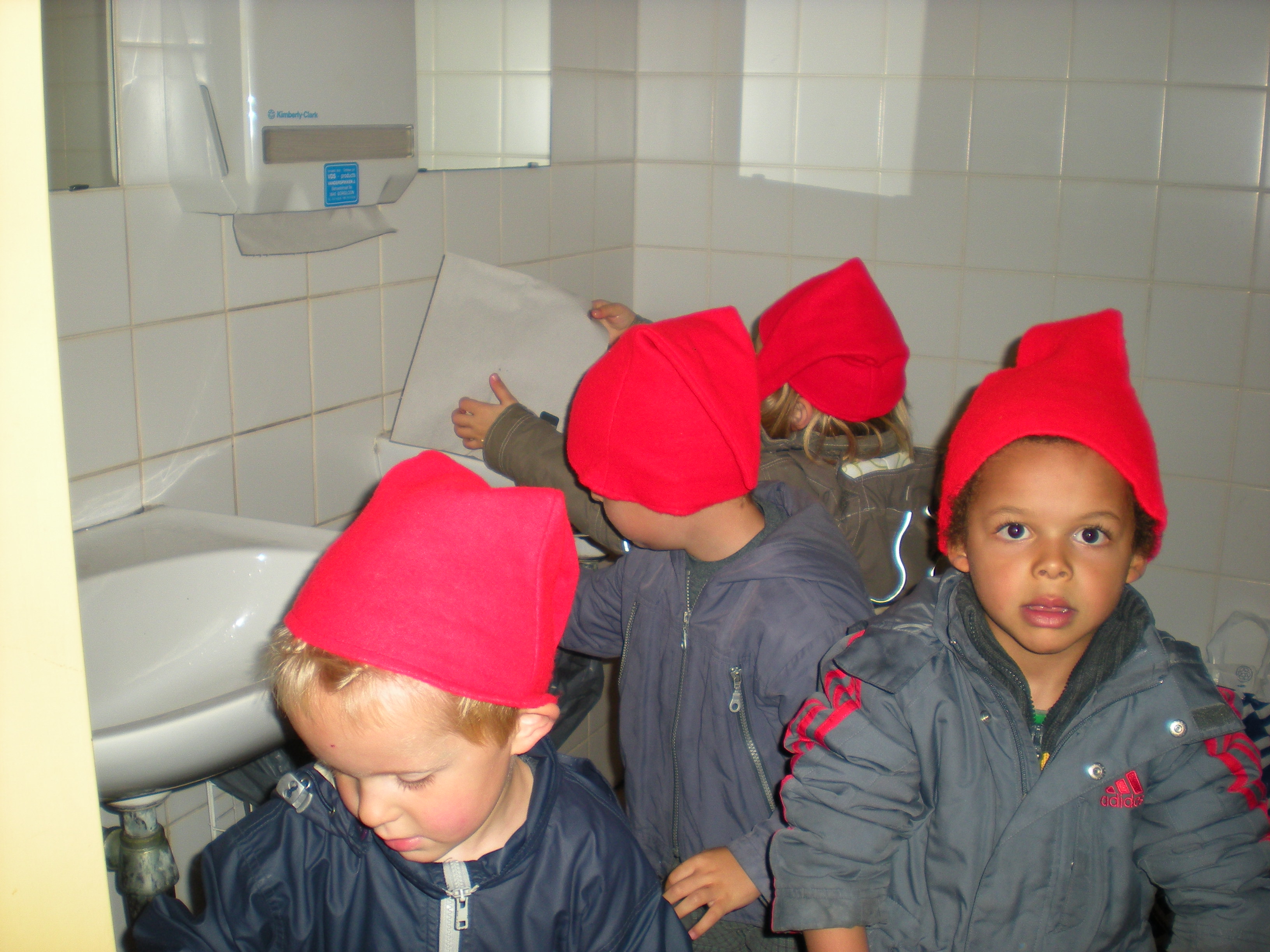 Na een stevige wandeling hadden we honger, eerst een plasje dan een wasje en