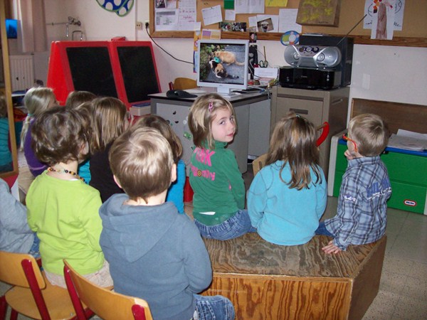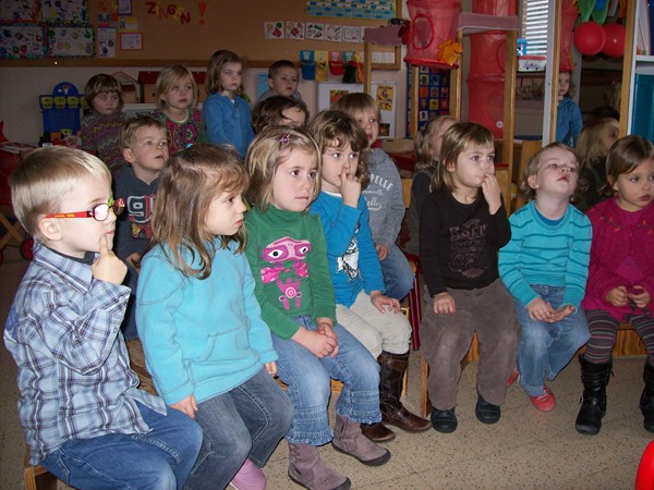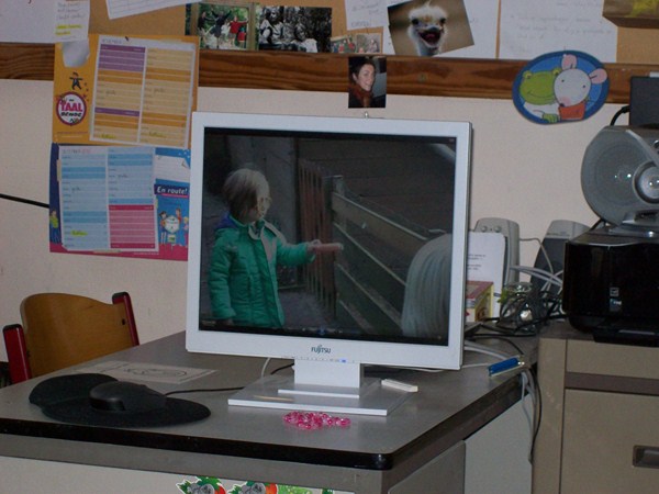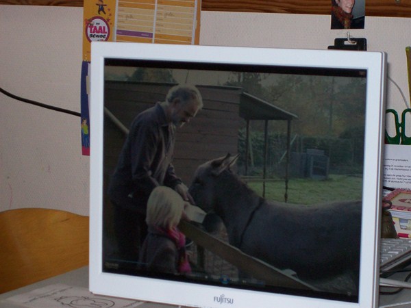 Foto's als we naar het filmpje kijken van bompa van Minne.