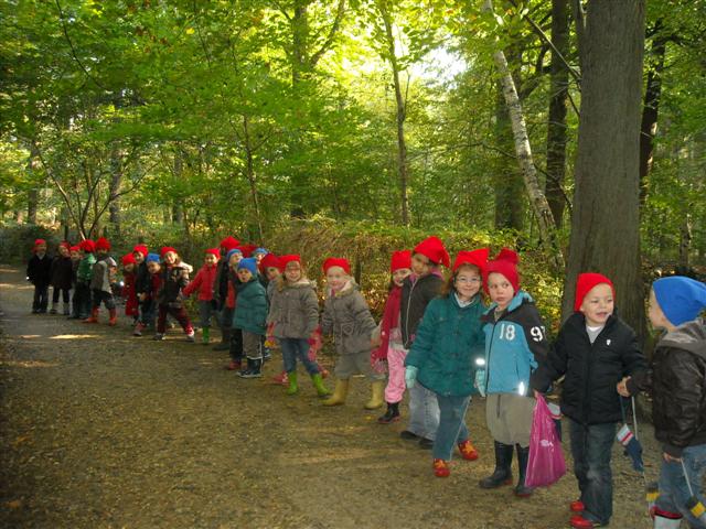 Kabouters houden van een mooi bos, afval moet in onze zak. Wie wil de handschoen aantrekken en de zak dragen?