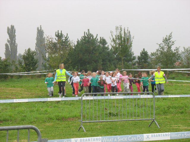 foto's scholenveldloopDe jongens zijn er klaar voor.En zo zag het podium eruit. En ja hoor 't waren allemaal kindjes van onze klas.Na de jongens waren de meisjes aan de beurt.En dit was dan het podium van onze meisjes.