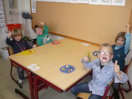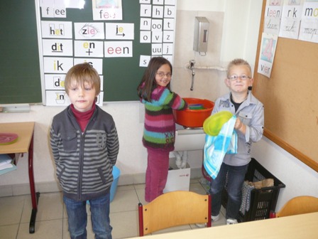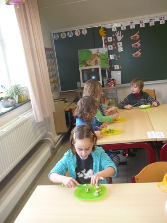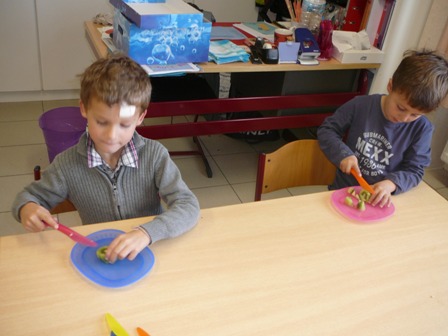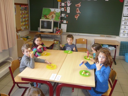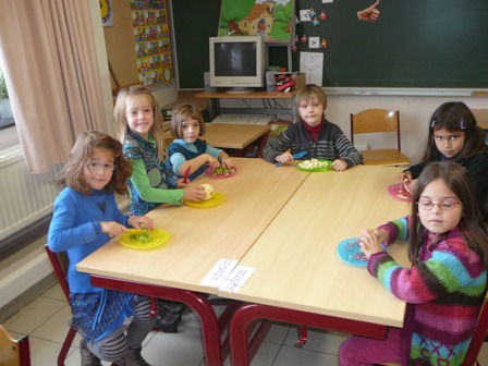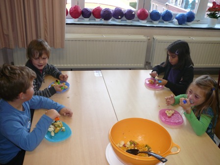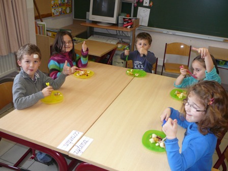 FruitslaNa het wassen gaan we ons fruit schillen en snijden. En nu smullen maar! Achteraf zorgen we allemaal samen dat alles weer netjes en proper is.