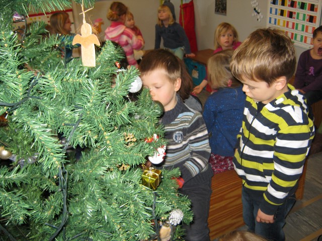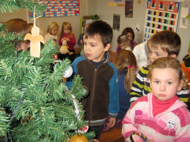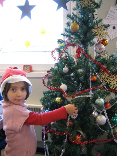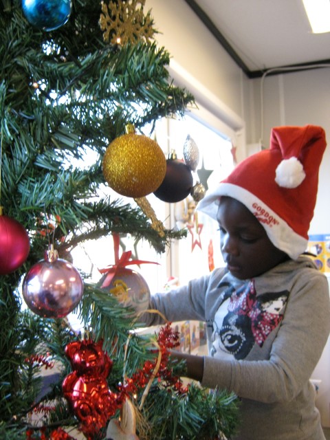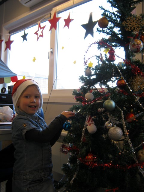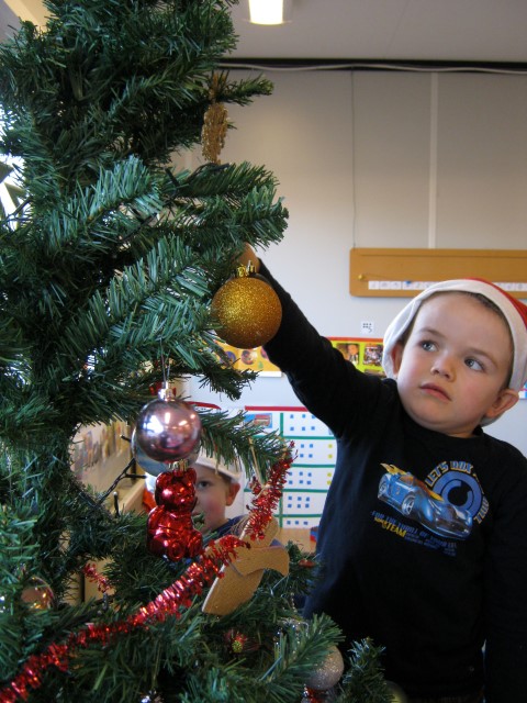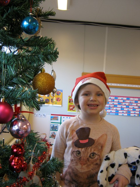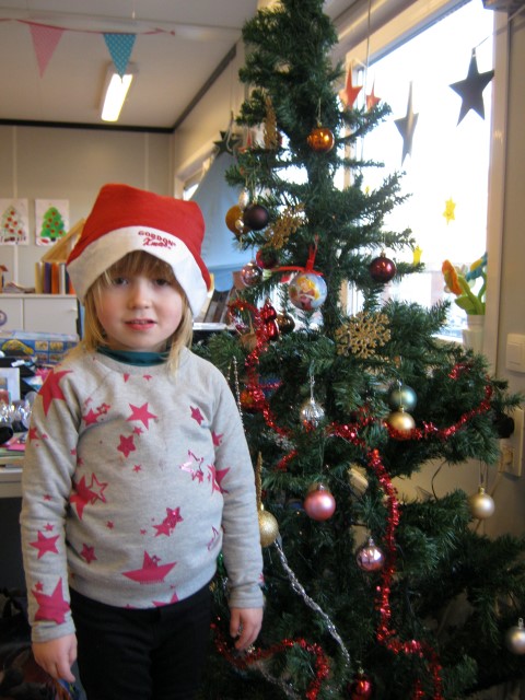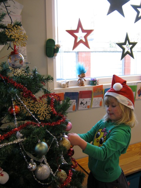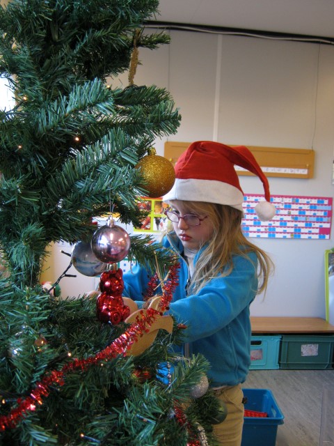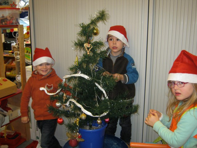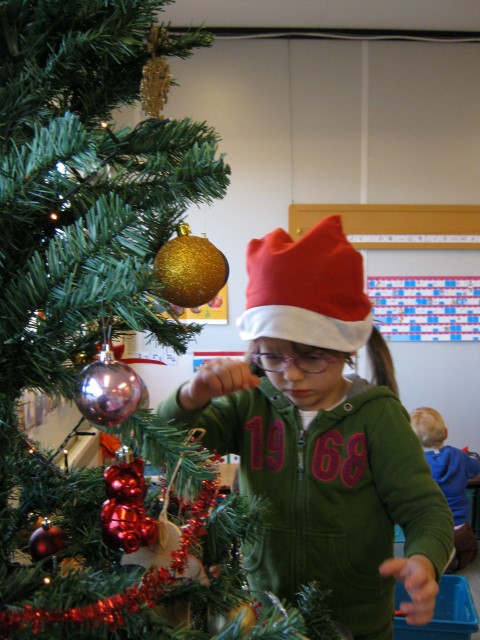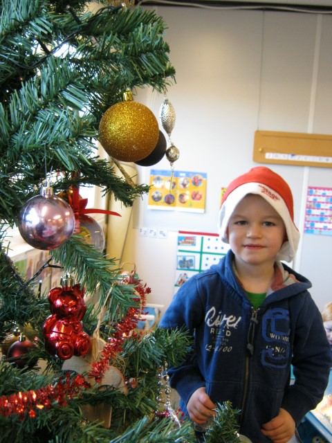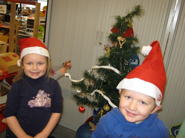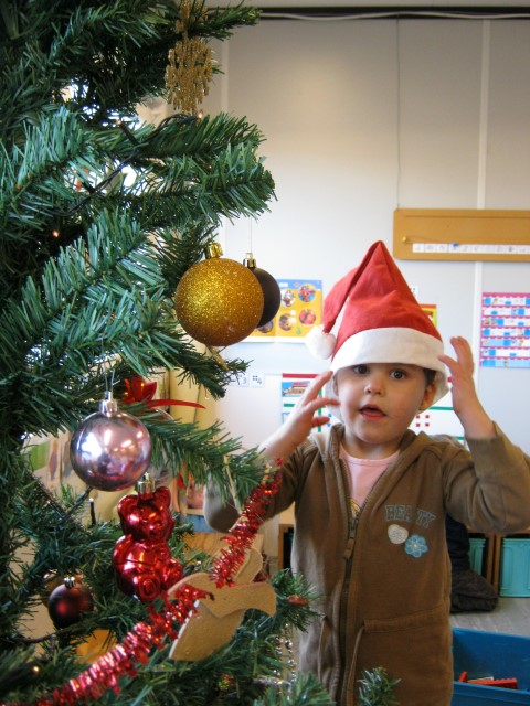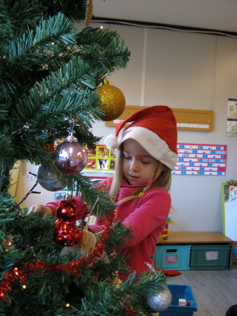 Geen Kerstmis zonder boom, iedereen wil de boom helpen versieren. Een balletje hier , een slinger daar , in een wip is die klaar.Ook in de poppenhoek hangt er kerstsfeer in de lucht.