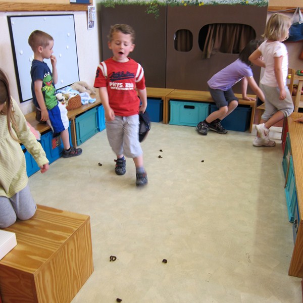 Dat gaat gepaard met de nodige drolletjes en plasjes, waartussen de kleuters vakkundig moeten slalommen.