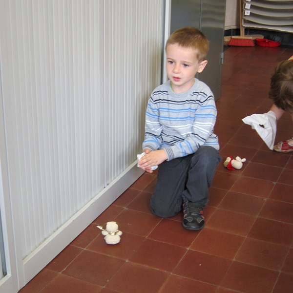 Als de kleuters na enkele uurtjes alweer merken dat dit scenario zich telkens opnieuw herhaalt, is het tijd om de puppy's een behoorlijke zindelijkheidstraining bij te brengen op een welbepaalde plaats in het gras.