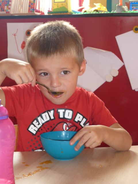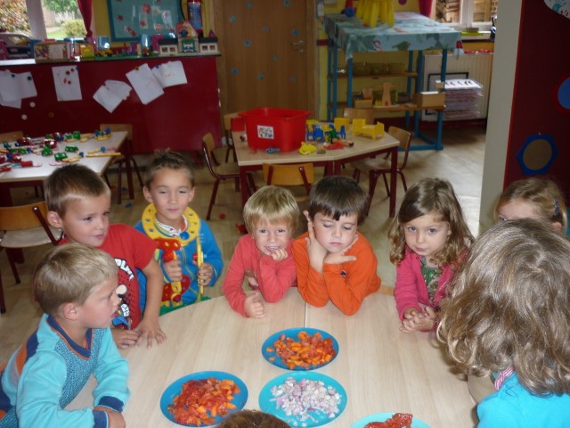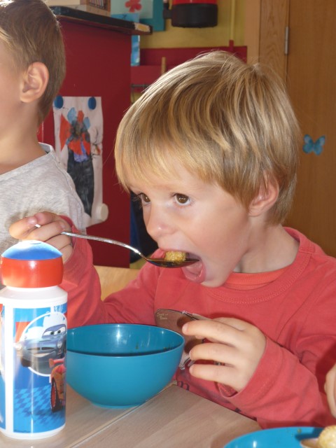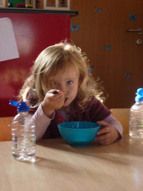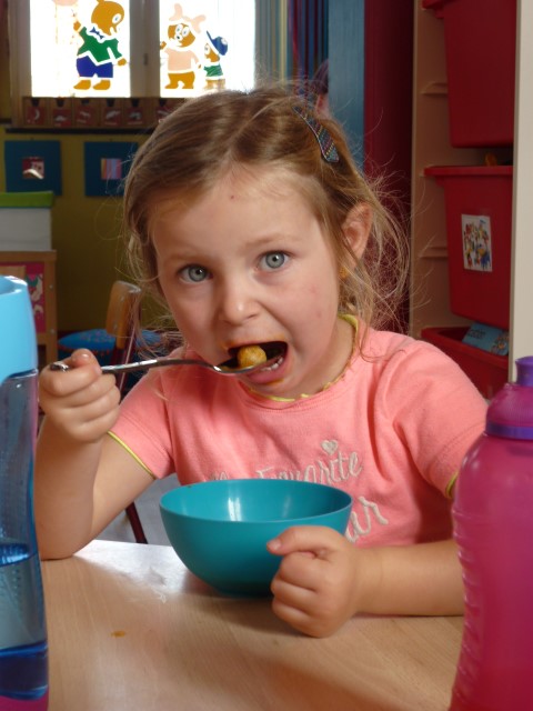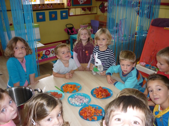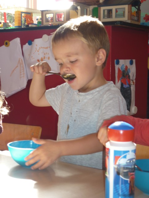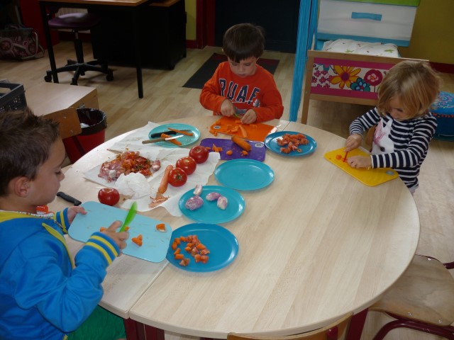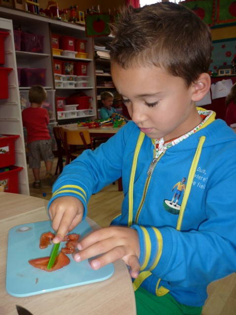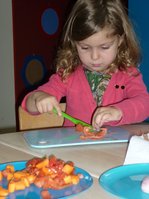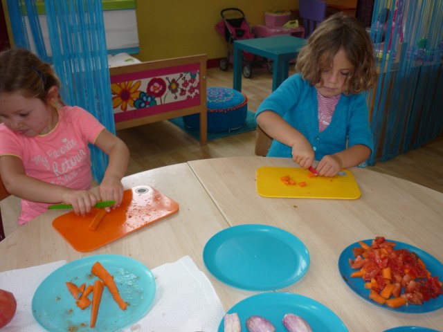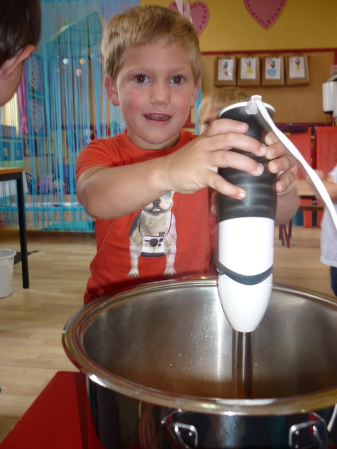 Bij de groenten snijden, bij het mixen, bij het afwassen, bij het werken...?