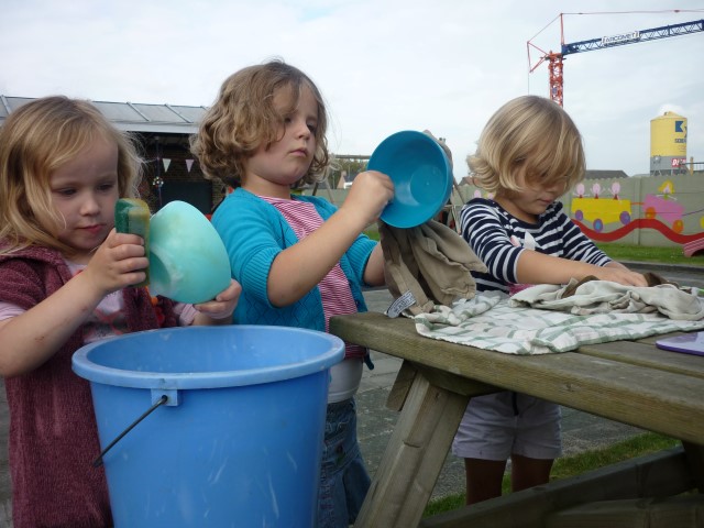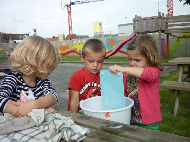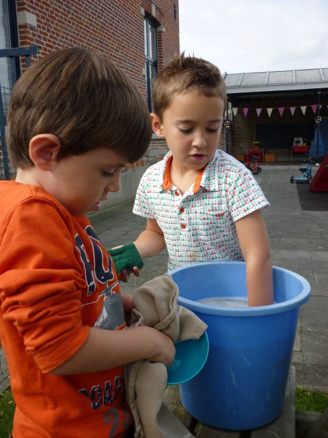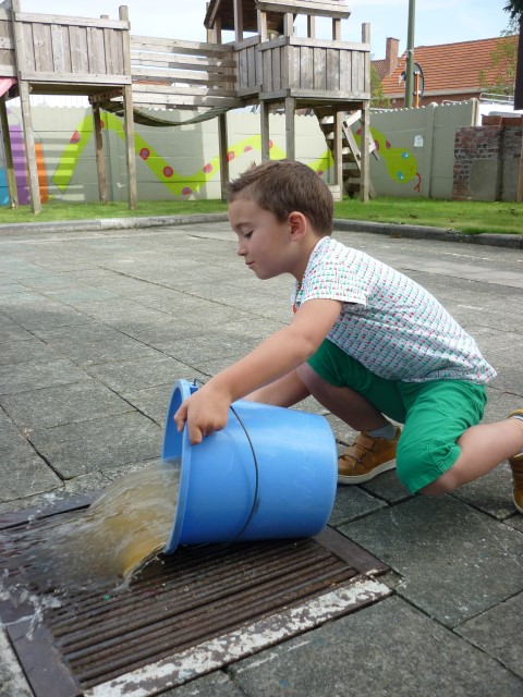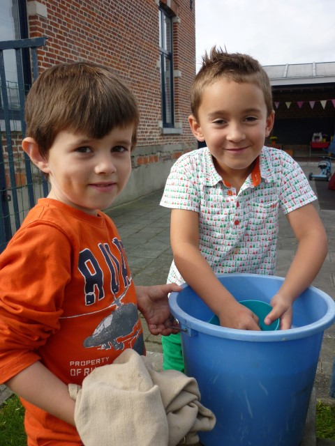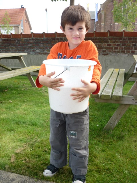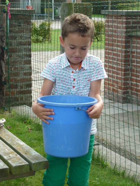 En dan hebben we natuurlijk de sterke mannen nodig om te emmers leeg te gieten.