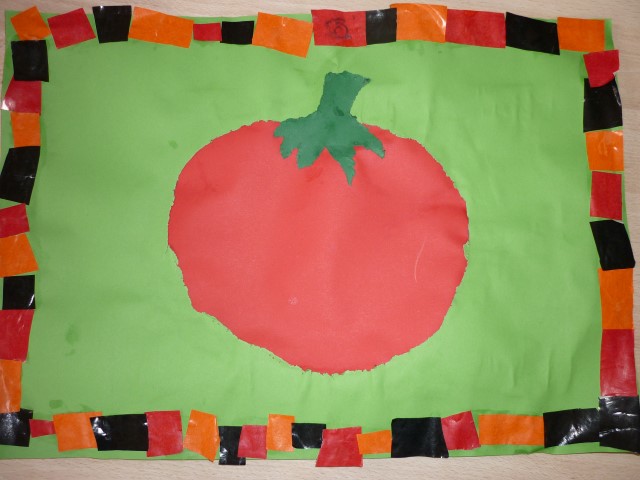 prikken: een tomaat + kleven volgens een patroon
