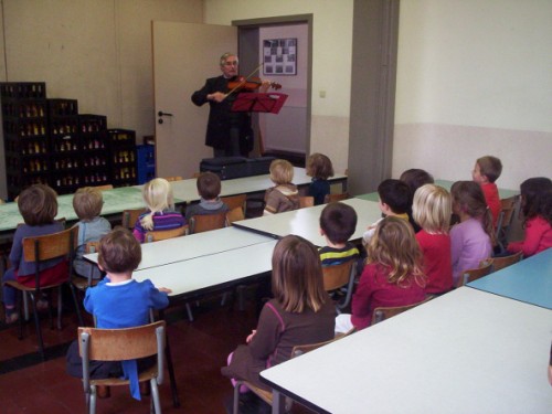 Op maandag 15 november kwam de opa van Margo viool spelen. Hij speelde bekende kinderliedjes en we zongen uit volle borst mee.
