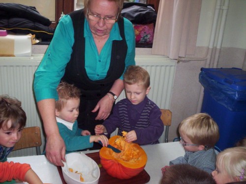 Dinsdag 16 november kwamen de oma en opa van Seppe D’haese soep maken. Samen hebben we geholpen met groentjes te snijden.