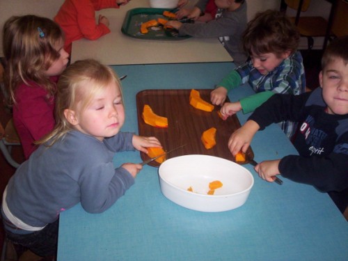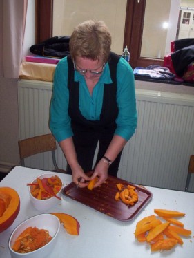 De oma van Brandon kwam pompoenfrietjes maken. Dit vonden we zeer lekker.