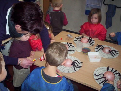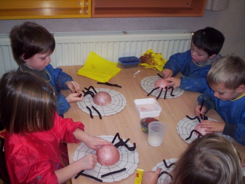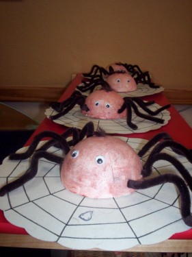 Donderdag 18 november kwam de oma van Ian spinnen knutselen in de klas. Wat zijn ze mooi!