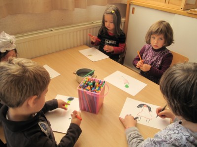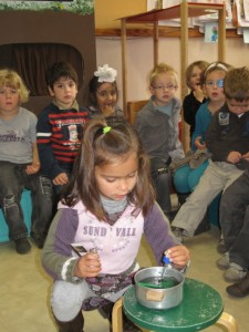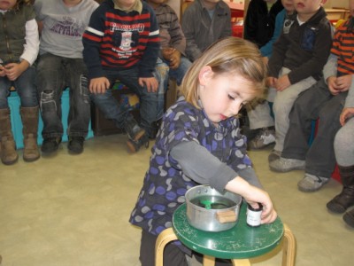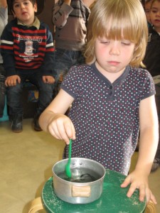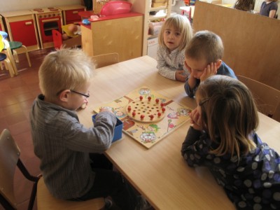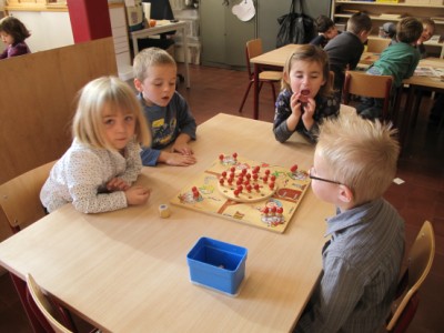 Heksenkeukenspel: de plaats van de kleuren proberen te onthouden.